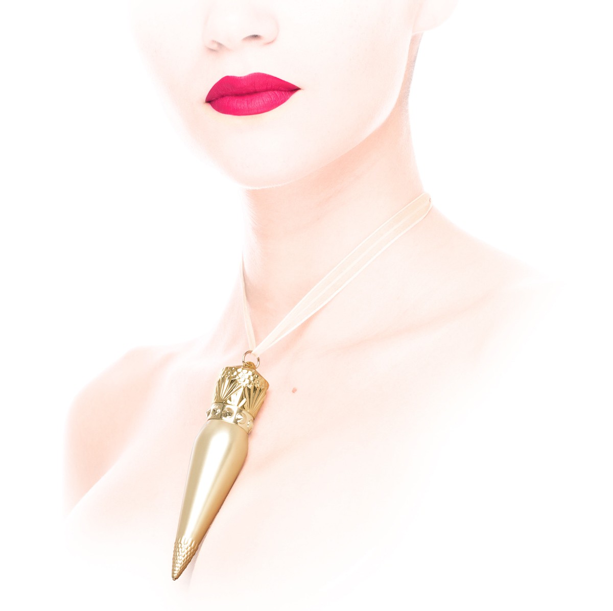 Nắp son được thiết kế một chiếc móc nhỏ để có thể luồn sợi dây kim tuyến qua, son Louboutin Bengali đã biến mình thành một thứ đồ trang sức ấn tượng thay vì chỉ là một món đồ mỹ phẩm thông thường.